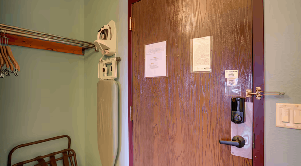 Perfect for families or groups, this room features two queen beds with premium bedding, plus a closet and dresser so you can settle in comfortably.