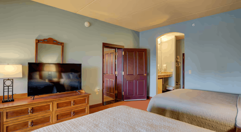 Also offering two queen beds, this cozy space includes soft linens, room-darkening shades, and convenient storage—ideal for additional guests.