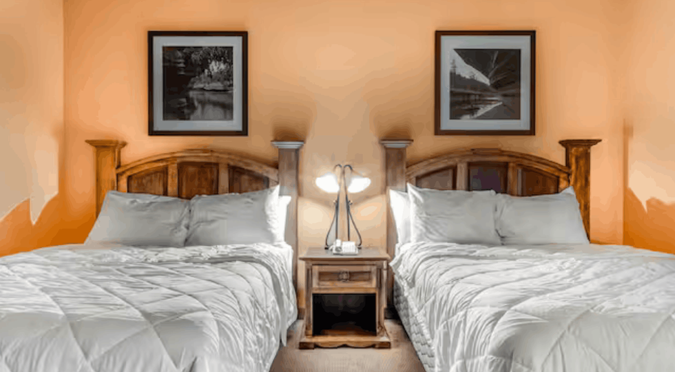 Perfect for families or groups, this room features two queen beds with premium bedding, plus a closet and dresser so you can settle in comfortably.