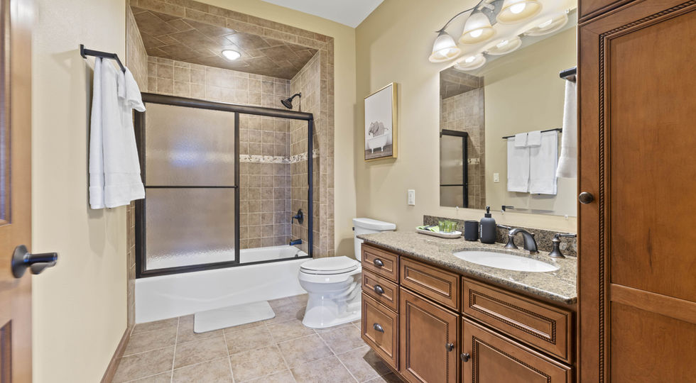 The large kitchen offers granite countertops, breakfast bar seating for up to 5 and every appliance, utensil, pot and pan one would need to cook a great meal at home. The kitchen is stocked with oil, spices, salt, pepper and service for up to eight guests. A complimentary coffee bar with both keurig and drip coffee service is provided along with hot tea, honey, cream and sugar.